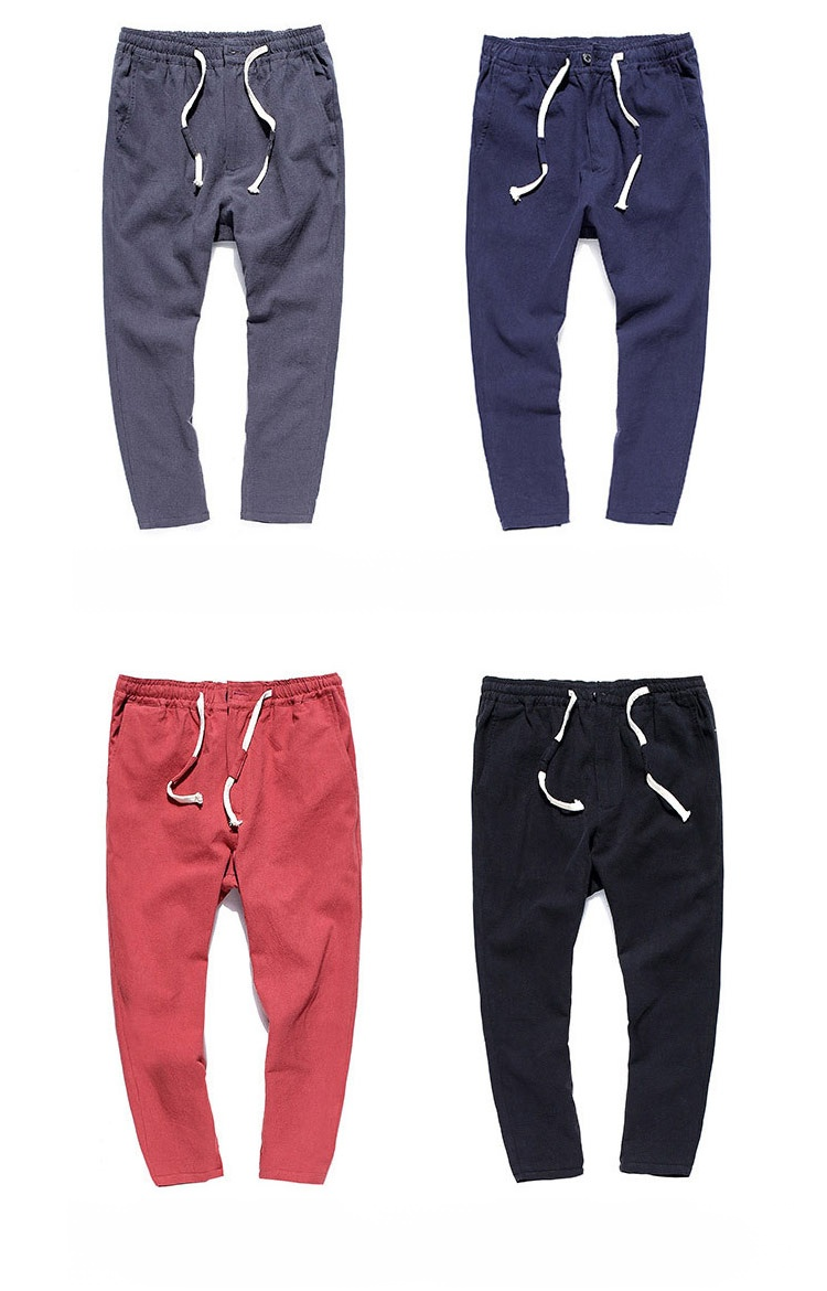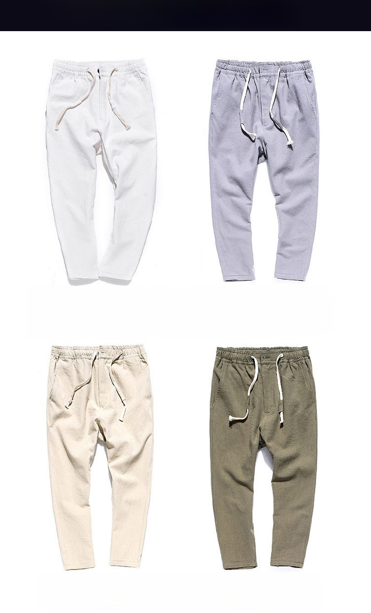 【男性綿麻素材パンツ】通気性 速乾性 履き心地満点 履きやすく、涼しく
